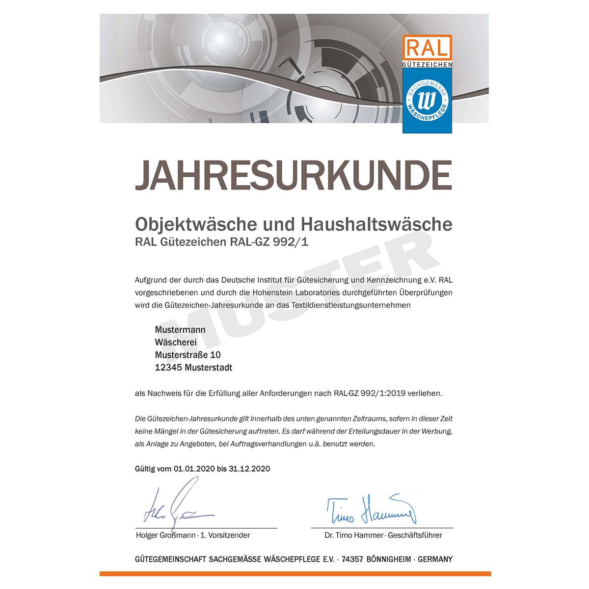 - RAL-GZ 992/1 Jahresurkunde