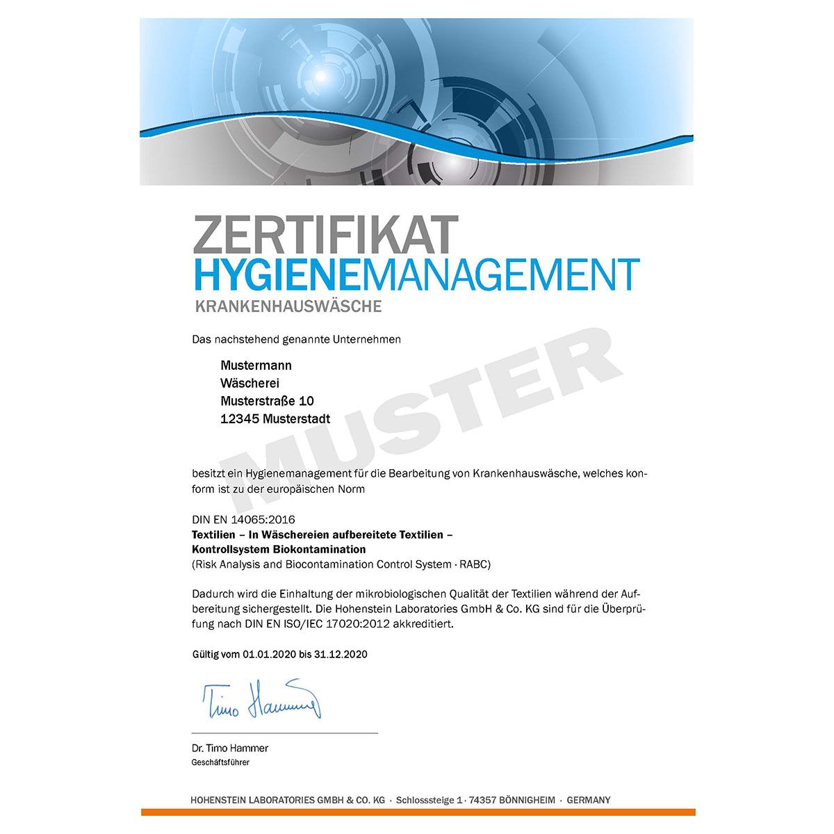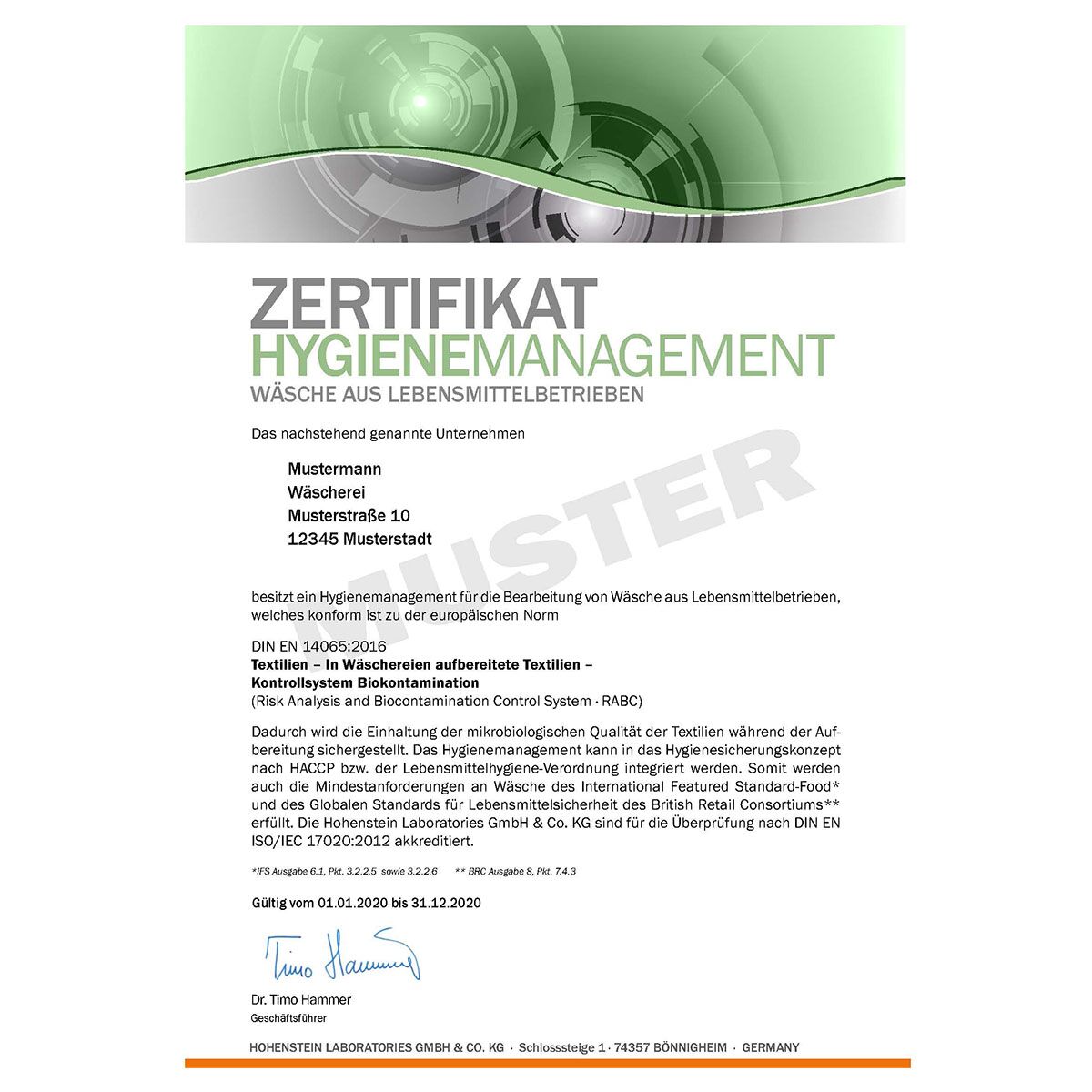 Alle Hygienezeugnisse für das Jahr 2020: