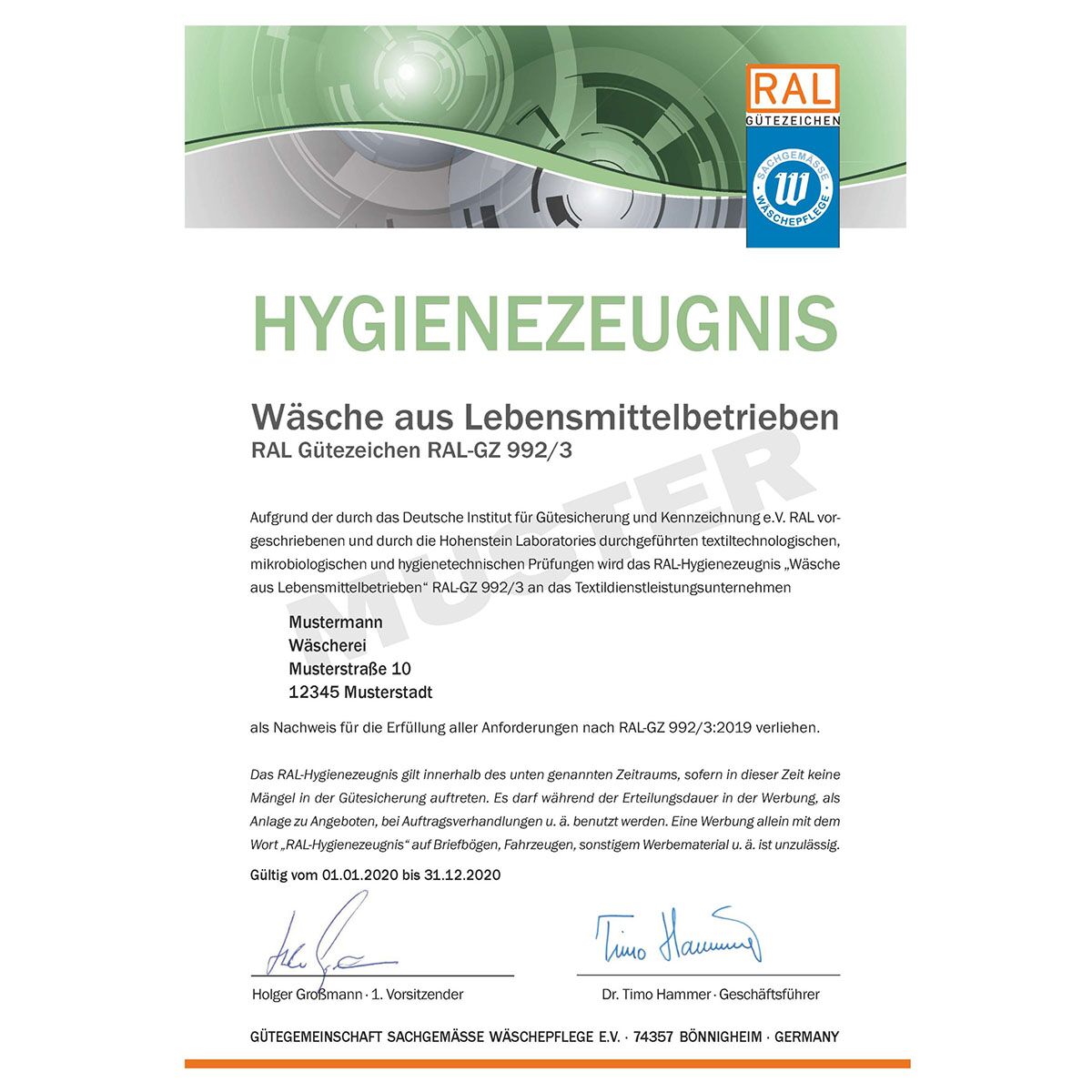 RAL Hygienezeugnisse 2020